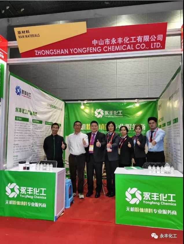 中山市永豐化工有限公司攜帶的填料系列、助劑系列產(chǎn)品包括煅燒高嶺土、滑石粉、云母粉、硫酸鋇等,吸引了眾多參觀者駐足了解詢問。永豐展臺上客戶嘉賓絡(luò)繹不絕,場